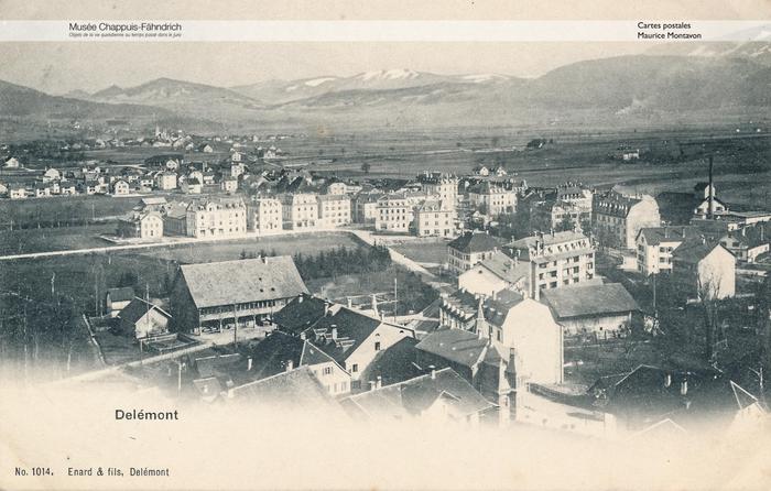 Vue aérienne, vue générale, immeubles, montagnes, cheminée industrielle à droite
