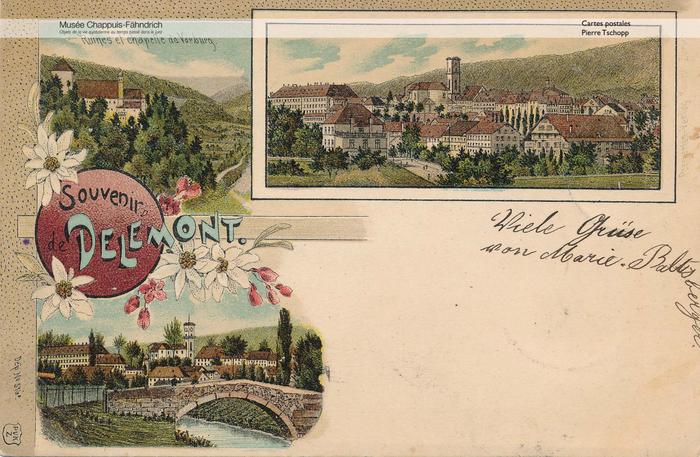 Décorations, couleurs, dessins, 3 images, edelweiss, Vorbourg, château, église, pont de la Maltière