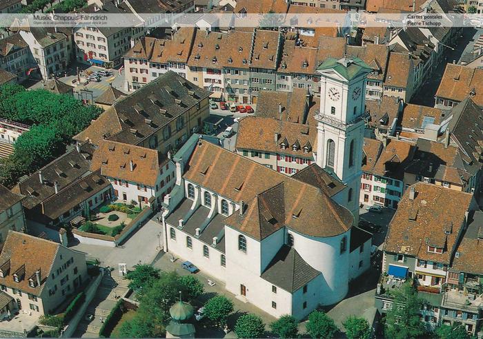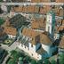 Vue aérienne, couleurs, église, voitures, clocher, vieille ville, balcons