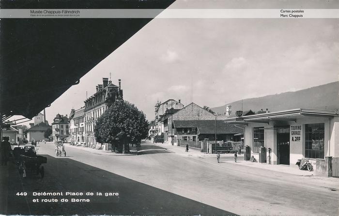 Place de la Gare, route de Berne, moto, "Touring Garage . JFF", chariot