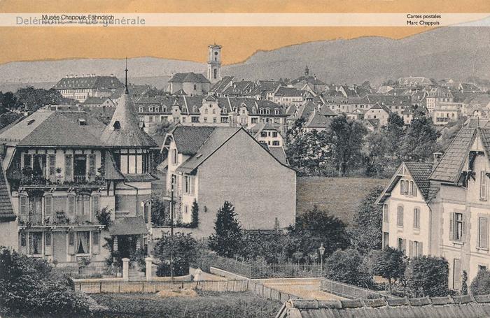 Ciel orange, vue générale, vue de haut, église, château, quartier de la Turquie