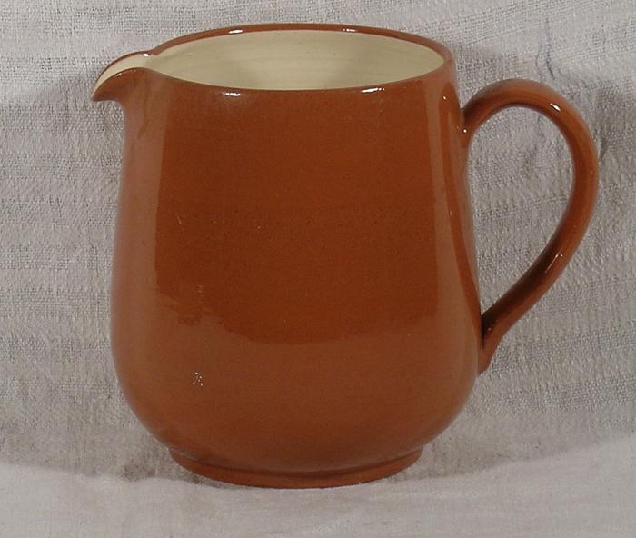 pot à lait ventru, émaillé brun, blanc à l'intérieur