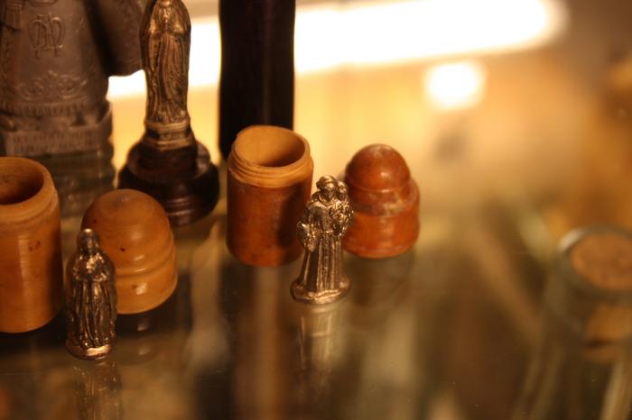 moutterlatte; St Antoine et l'enfant Jésus dans étui de bois tourné